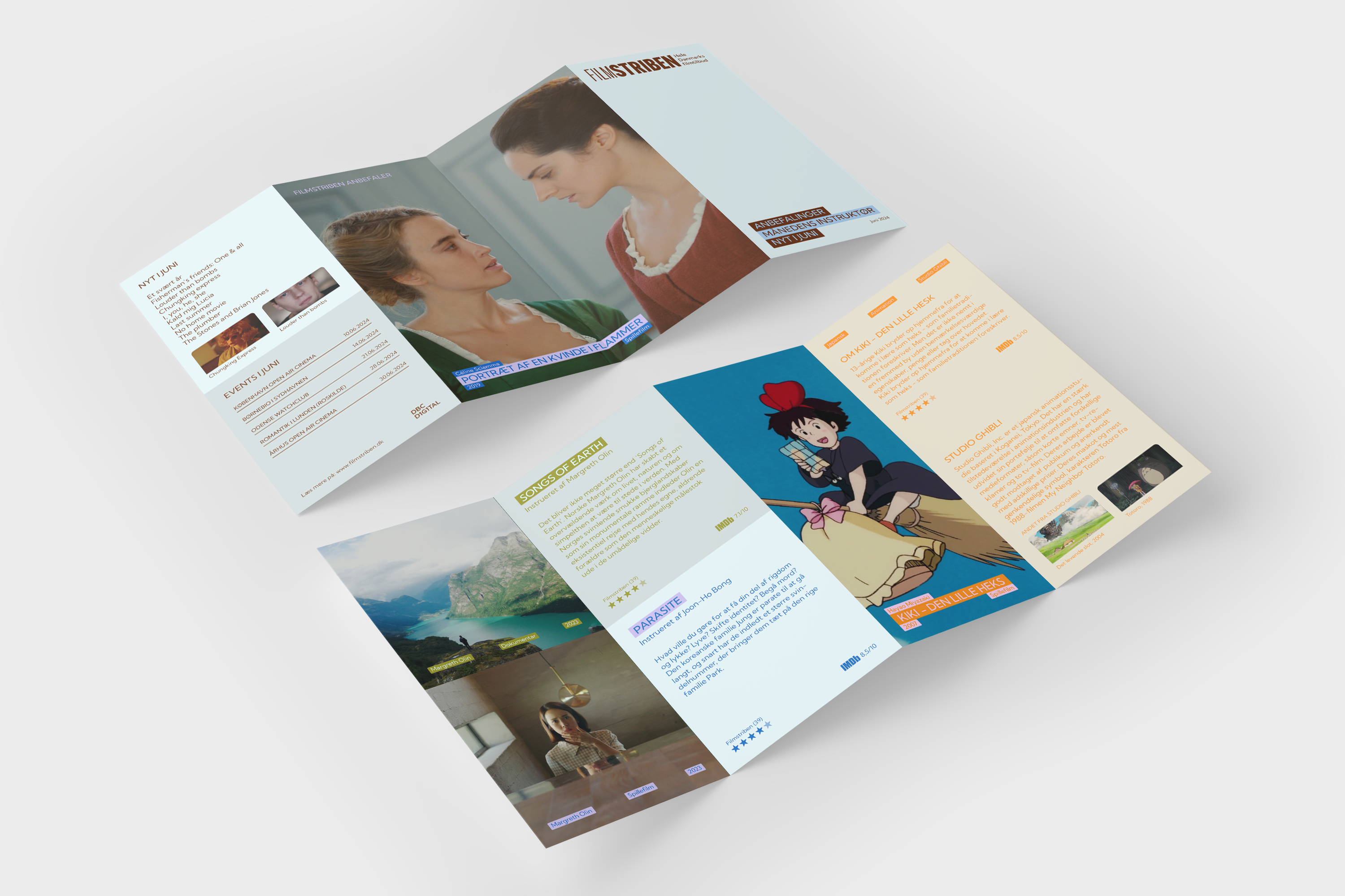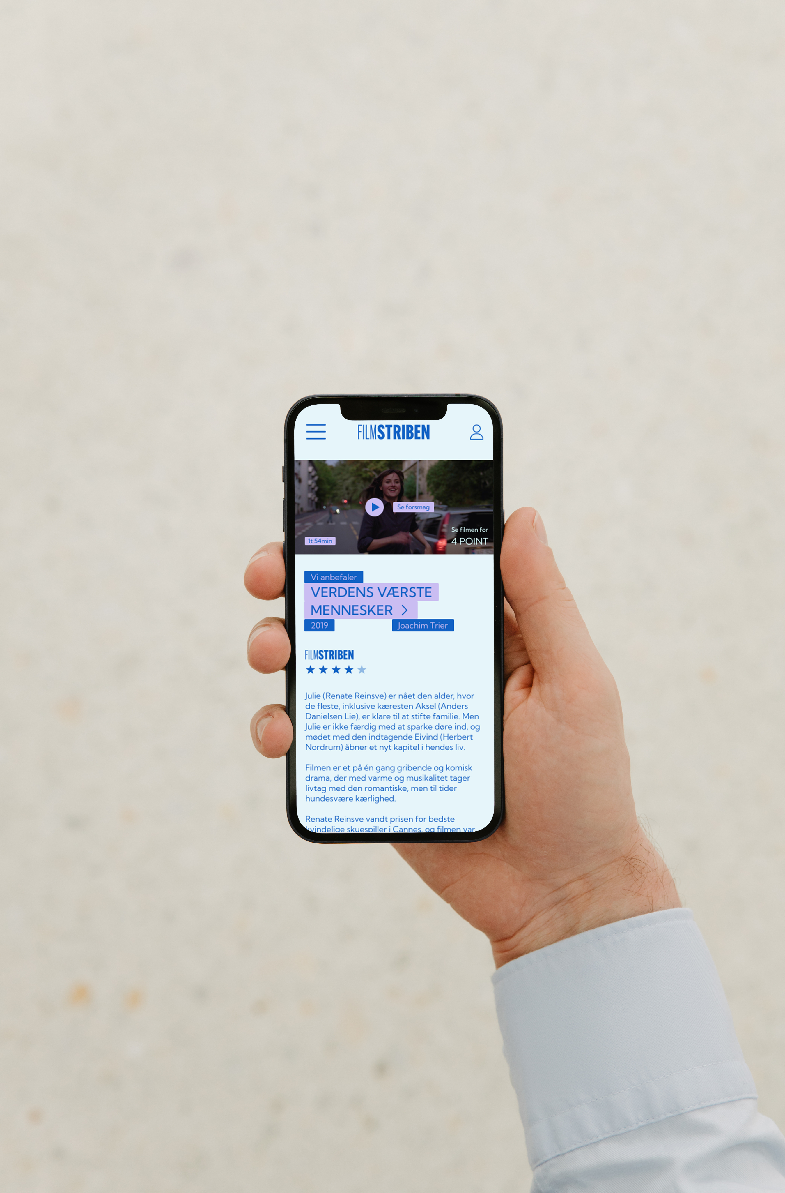 Ved udarbejdelsen af dette projekt var der en masse forberelse i research, test og analyser af eksisterende design. Derudover havde jeg kontakt til Filmstriben, som hjalp med at besvare, hvordan de så sig selv. Det vigtige i udarbejdelsen af dette var at ramme visuals, der skabte associationer til kvalitet, kultur og historiefortælling. Det gjorde jeg ved at dykke ned i visuelle udtryk fra filmverdenen. Der blev lavet brugertest på det digitale design efterfølgende, for at understøtte den forbedrede brugerrejse på hjemmesiden. Der gik desuden meget tid med at udforske visuelle retninger.
